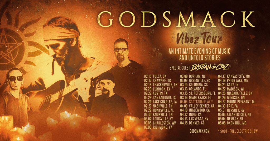 Vibez Tour April 26, 2024April 28, 2024 Kyle BandsGodsmack – Setlist (5th) Location: Windsor, OntarioVenue: Windsor Colosseum